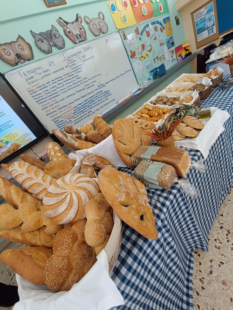 Η επίσκεψη έκλεισε με μία εντυπωσιακή έκθεση φρέσκου, μυρωδάτου ψωμιού και αρτοσκευασμάτων, τα οποία γέμισαν την τάξη με γεύση και παράδοση. Ήταν μια ξεχωριστή εμπειρία βιωματικής μάθησης που έφερε τα παιδιά σε επαφή με τη διατροφική και πολιτισμική αξία του ψωμιού!